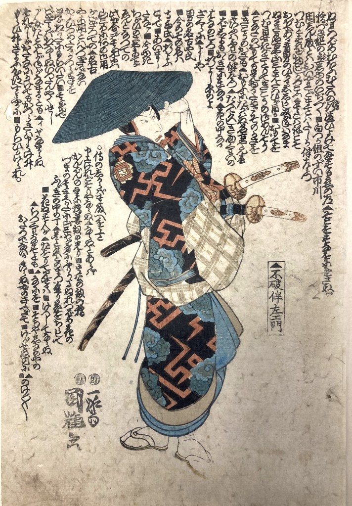 Tōshūsai Sharaku (actif de 1794 à 1795), plus connu sous le seul nom de « Sharaku », est très généralement considéré comme l’un des grands maîtres de l’estampe japonaise (gravure sur bois). Son œuvre représente de façon particulièrement vivante et audacieuse les acteurs de kabuki les plus célèbres de son temps. On sait cependant fort peu de choses de lui, en dehors de ses estampes ukiyo-e (terme japonais signifiant «image du monde flottant ») est un mouvement artistique japonais de l’époque d’Edo (1603-1868).