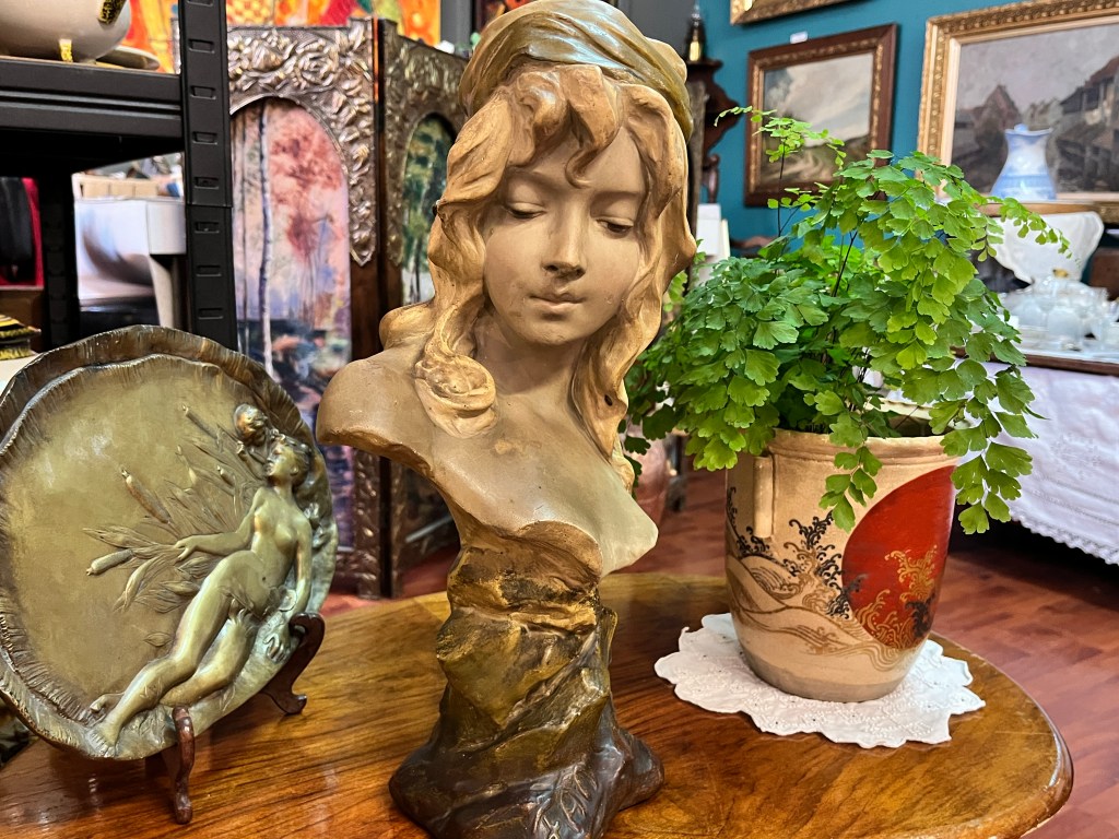 Buste en plâtre polychrome Art nouveau, Fanchon par Kerckhove, début XXème, Ecole belge