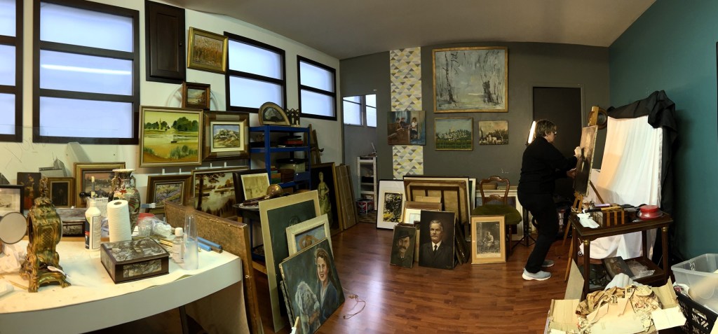 L’art délicat du nettoyage de tableaux anciens. Quelques petites touches de restauration également…